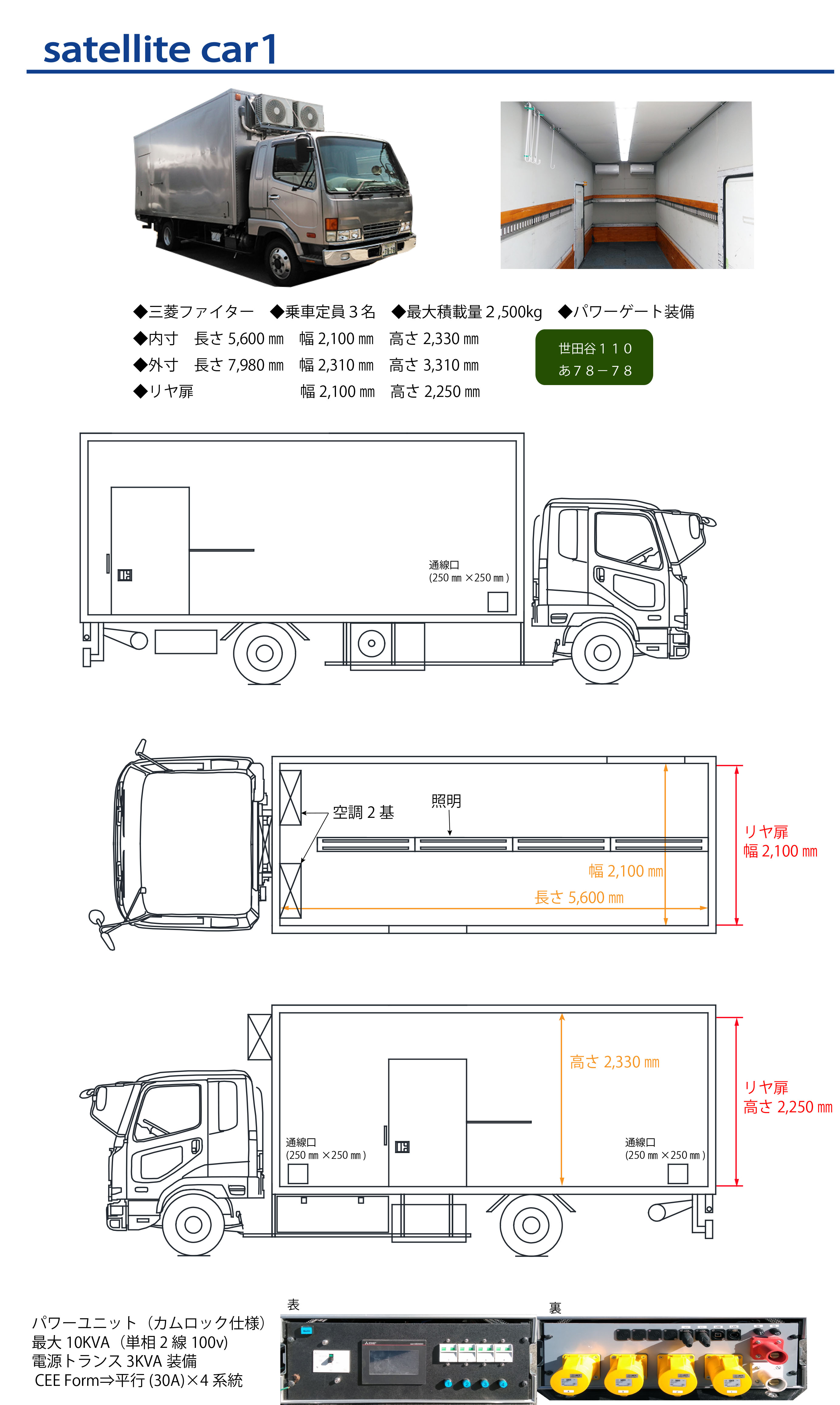サテライトカー2号    サテライトカー3号    サテライトカー5号    車両使用例   オプション